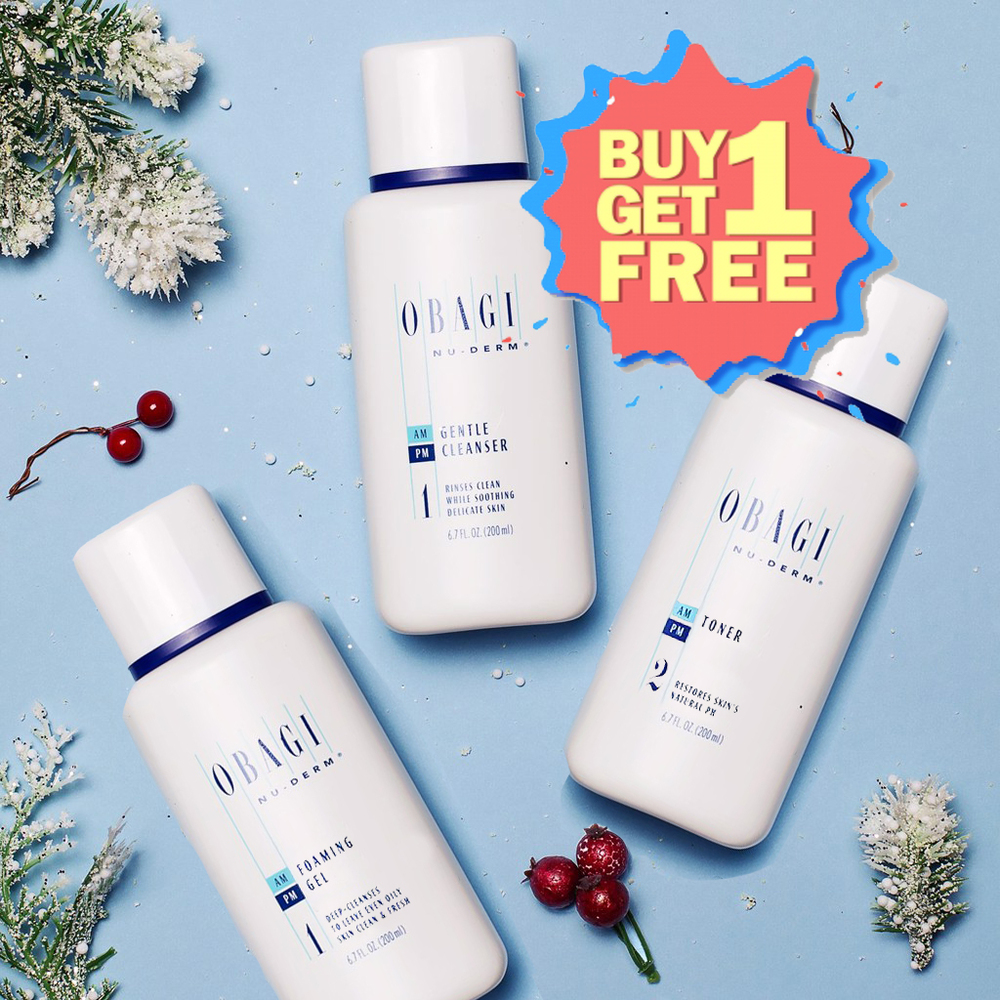 | | For a limited time, buy one get one free on three of our most popular items: Obagi Nu-Derm's Foaming Gel, Gentle Cleanser, and Toner! Discount will automatically be applied during checkout. Limit one free item per order! |