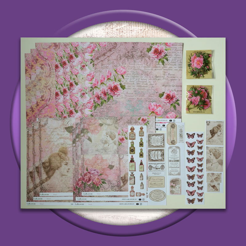LaBlanche Peonies Paper Kit - Papers, Tags & Lasercut Pieces